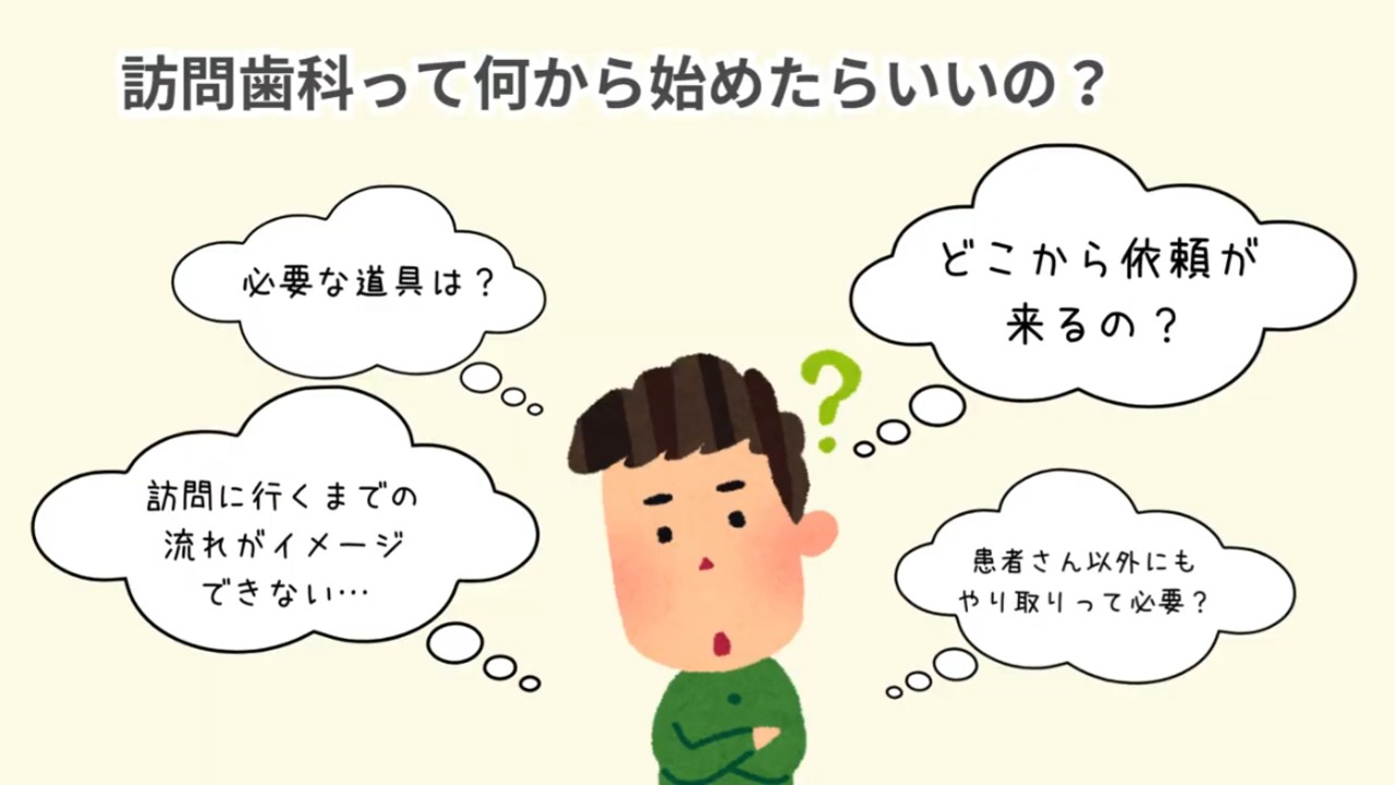 「これから訪問歯科を始めたいけど何から準備したらいいの?」そんな歯科医院向けに以下の内容を1本の動画にまとめました。